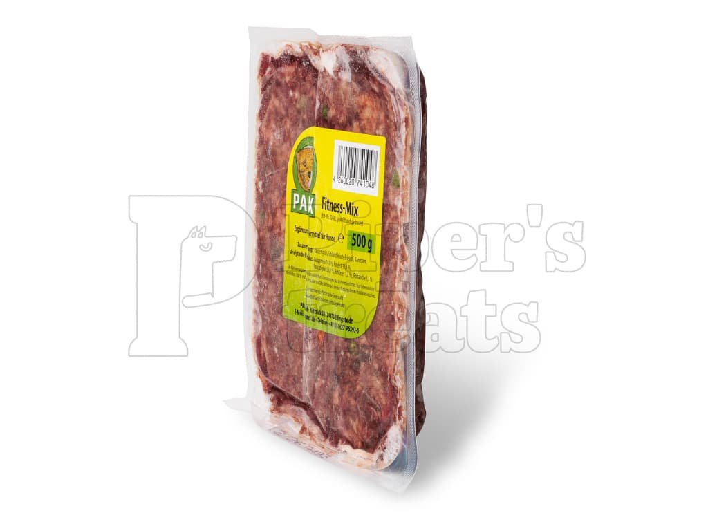PAEX – Hovädzí fitness MIX je mrazená surová zmes pre psov vytvorená podľa zásad prirodzenej BARF výživy. Kombinuje zelené hovädzie držky – zdroj enzýmov a probiotík, hovädziu svalovinu s chrupavkami – prirodzený zdroj kolagénu, a zeleninu (mrkvu, hrášok), ktorá dodáva vlákninu a antioxidanty. Zmes podporuje trávenie, vitalitu a zdravé kĺby a pomáha udržiavať ideálnu hmotnosť psov v záťaži alebo s vyššou aktivitou.