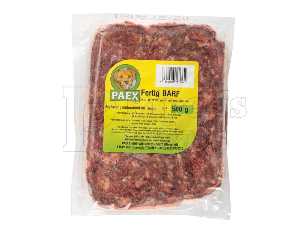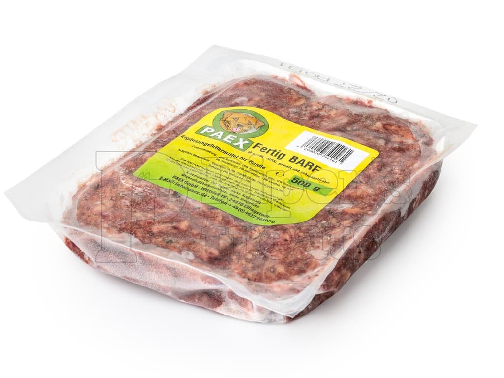 PAEX – Hovädzie BARF menu s mrkvou a jablkom je plnohodnotná mrazená surová zmes určená pre prirodzenú výživu psov. Kombinuje hovädzie mäso, zelené držky, kosti, pľúca a pečeň v prirodzenom pomere, doplnené o mrkvu a jablká ako zdroj vlákniny, vitamínov a antioxidantov. Takto vytvára vyvážené BARF menu, ktoré podporuje trávenie, vitalitu a celkovú kondíciu psa.
