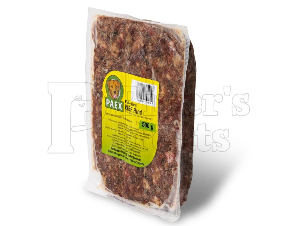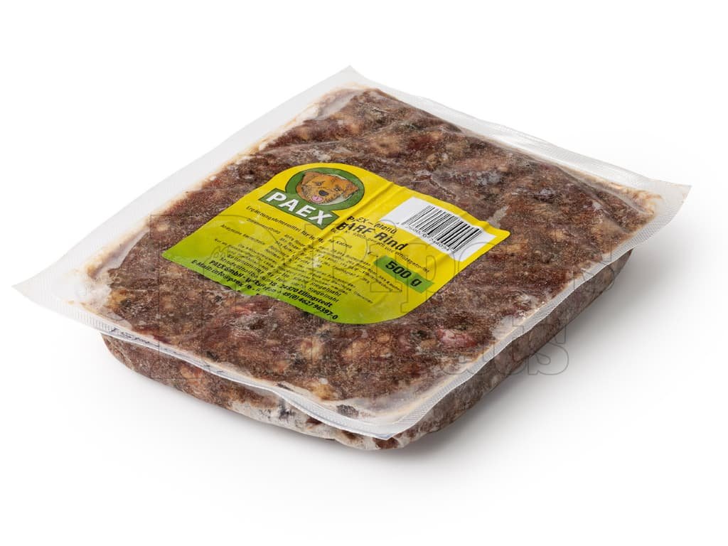 PAEX – Hovädzie BARF menu je kompletná mrazená zmes pripravená podľa zásad prirodzenej BARF výživy. Spojenie hovädzieho mäsa a vnútorností s mrkvou, jablkami a hruškami poskytuje všetky dôležité živiny potrebné pre zdravie, vitalitu a správne trávenie. Receptúra je doplnená o ľanový olej a bylinnú zmes, ktoré podporujú imunitu, lesklú srsť a celkovú pohodu zvieraťa.