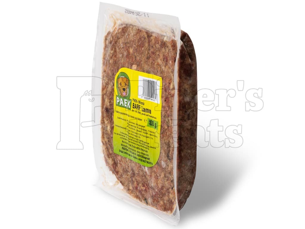 PAEX – Jahňacie BARF Menu je kompletné jahňacie krmivo pre psov a mačky. Spojenie jemného mäsa, držiek, vnútorností, zeleniny, ovocia a byliniek poskytuje vyvážený pomer bielkovín, tukov a vlákniny. Vysoká stráviteľnosť a jemná chuť robia z tohto menu ideálnu voľbu aj pre citlivé trávenie.