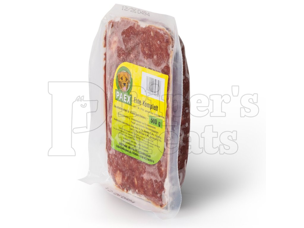 PAEX Kačka komplet – kompletná BARF zmes pre psov a mačky z kačacieho mäsa, kostí, chrupaviek a vnútorností. Vysoký obsah bielkovín, kolagénu a tukov podporuje zdravé svaly, kĺby a energiu.