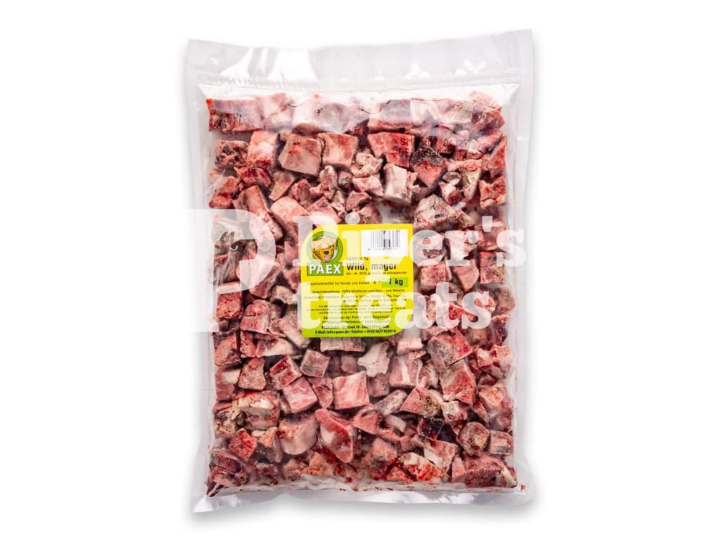 PAEX – Kocky z diviny sú 100 % kúsky kvalitnej diviny z daniela a srnca, krájané na praktické mrazené porcie. Šokové zmrazenie zachováva prirodzené živiny, čerstvosť a vysokú stráviteľnosť.