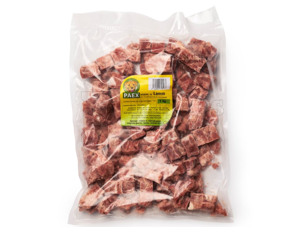 PAEX Kocky z jahňacieho mäsa sú 100 % čisté porcie z jemnej jahňacej svaloviny, tvarované do praktických mrazených kociek pre jednoduché a hygienické dávkovanie. Jahňacie mäso je vysoko stráviteľné, výživné a dobre tolerované aj u psov a mačiek s potravinovými intoleranciami alebo po diétnom režime.