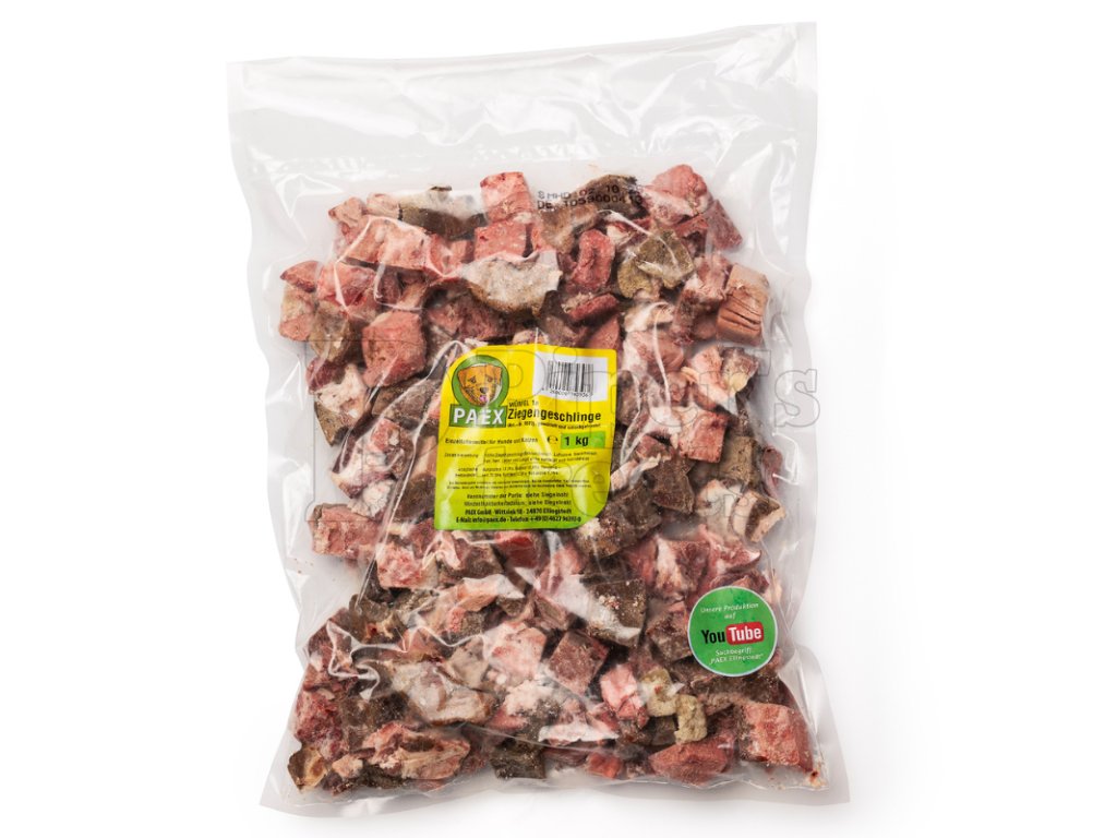 PAEX Kocky z kozích vnútorností predstavujú koncentrovaný zdroj živočíšnych živín vo forme mrazených porcií. Zmes je tvorená výhradne kozími orgánmi (pažerák, priedušnica, slezina, tuk, srdce, pečeň, pľúca) a neobsahuje hrtan ani štítnu žľazu.