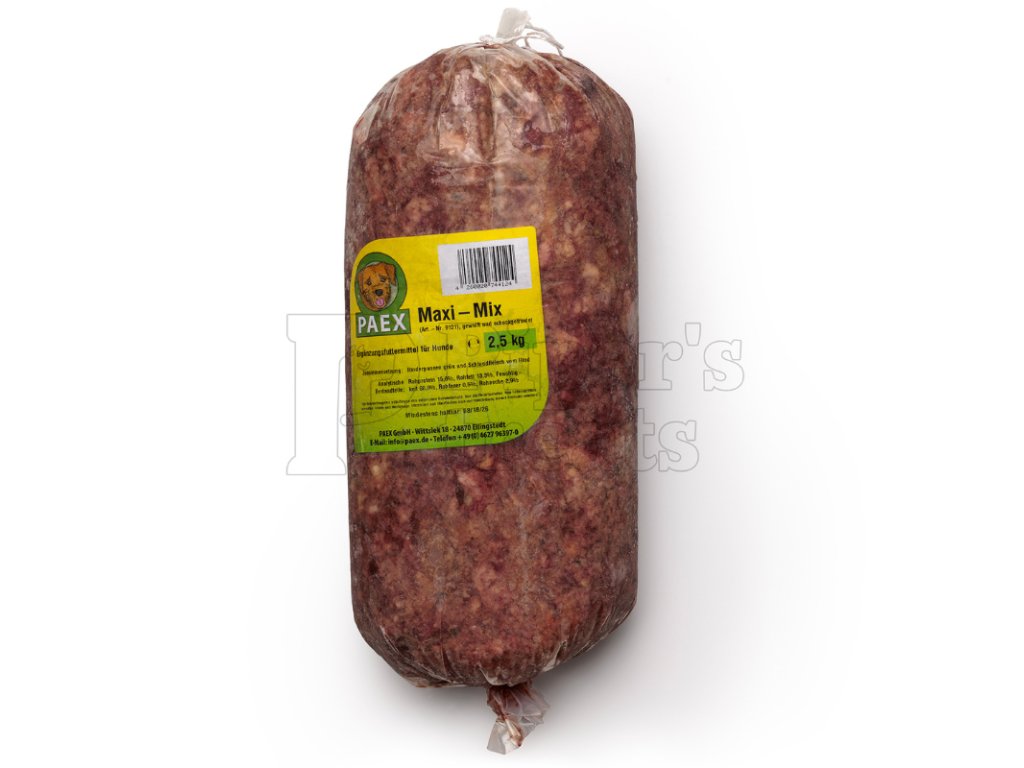 PAEX – Maxi MIX z hovädzieho mäsa je výživný BARF hovädzí mix zo zelených držiek, svaloviny a chrupaviek v praktickom 2,5 kg balení. Poskytuje vysoký obsah bielkovín, tuku, enzýmov a kolagénu – ideálna prírodná energia pre aktívnych psov a psy so zvýšenou potrebou živín.