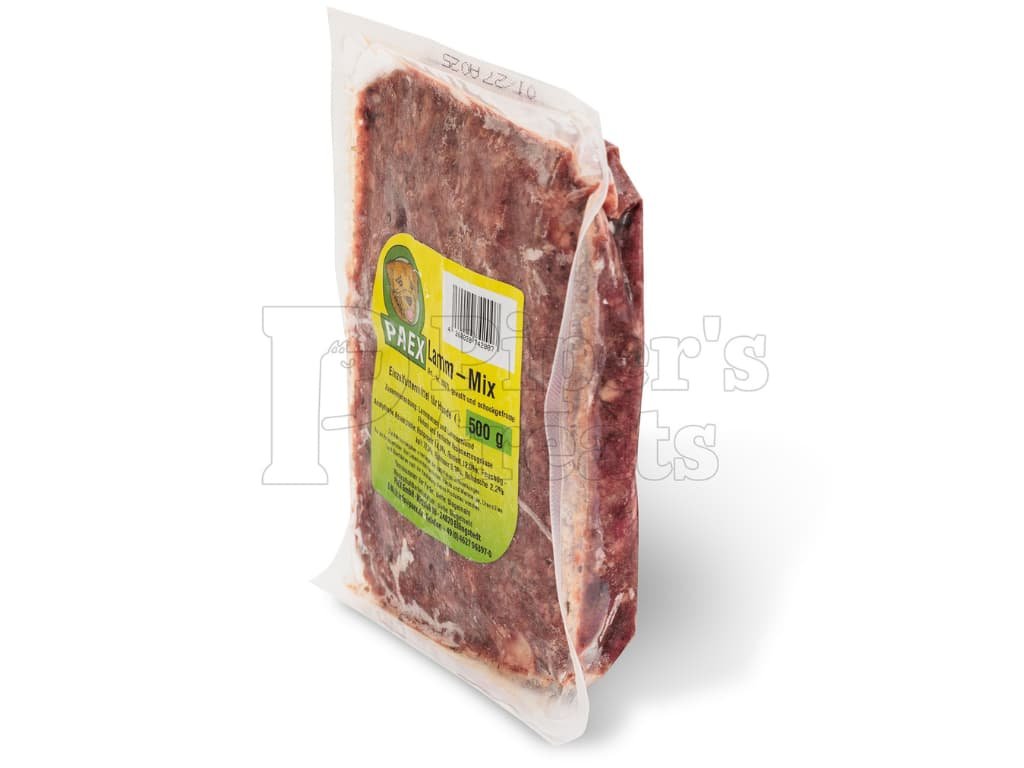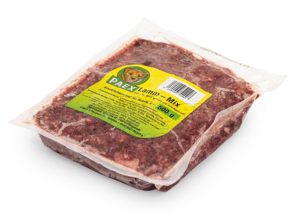 PAEX – Jahňací MIX je kompletná živočíšna zmes bez kostí určená na každodenné BARF kŕmenie. Obsahuje iba jahňacie držky a jahňacie mäso z hrdla (pažerák). Vďaka jednodruhovému zloženiu a vysokej stráviteľnosti je vhodný pre psov s citlivým trávením, intoleranciami, alergiami, pre šteňatá aj malé plemená.