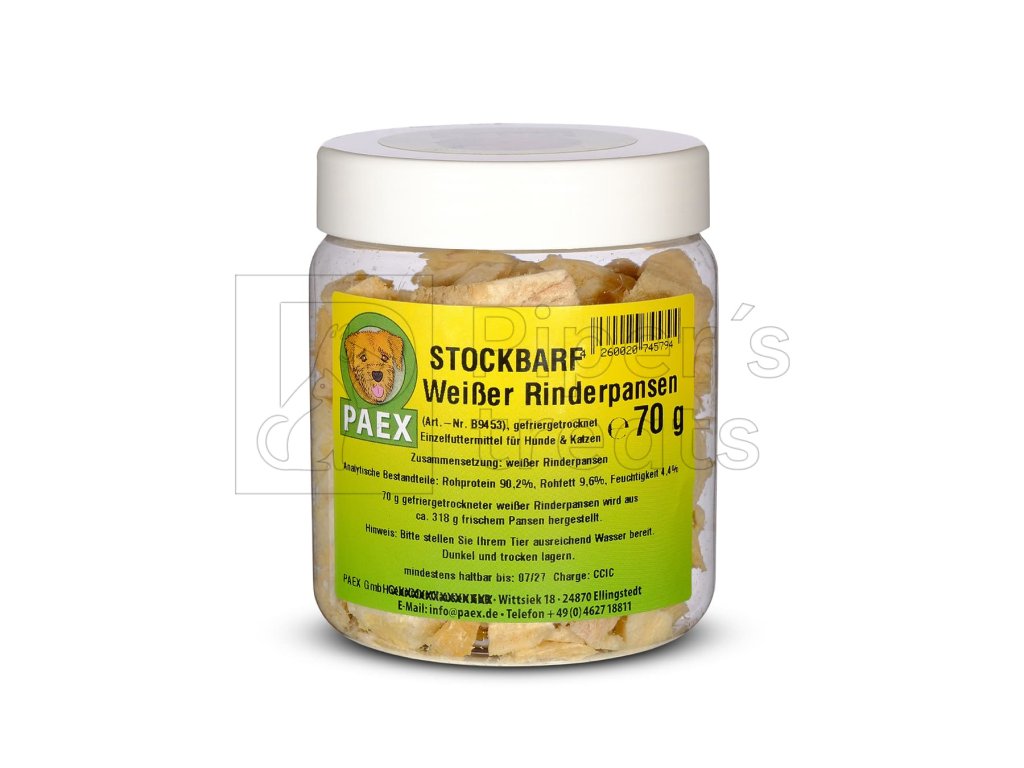 PAEX – Mrazom sušené biele hovädzie držky sú vysoko kvalitná, jednosurovinová maškrta spracovaná najmodernejšou metódou sušenia mrazom. Na výrobu tohto 70 g balenia bolo použitých približne 318 g čerstvej suroviny, čo zabezpečuje vysokú koncentráciu nutrientov a prirodzenej arómy. Vďaka šetrnému spracovaniu si biele hovädzie držky zachovávajú dôležité probiotické kultúry a enzýmy, ktoré sú kľúčové pre zdravú črevnú mikroflóru a bezproblémovú asimiláciu živín.