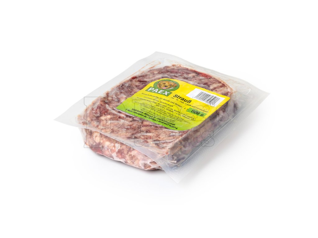 PAEX - Pštrosie mäso PUR je výnimočný zdroj kvalitných bielkovín s jemnou chuťou a vysokou stráviteľnosťou. Vďaka nízkemu obsahu fosforu a vápnika nezaťažuje organizmus a hodí sa pri diétnych režimoch, alergiách a intoleranciách. Čistá svalovina bez kostí a vnútorností poskytuje energiu bez zbytočných prísad. Je to skvelá voľba pre každodenné menu aj pre individuálne zostavený BARF na mieru – najmä pri rotácii proteínov a citlivom trávení.