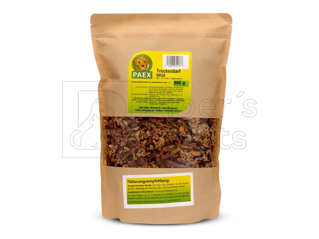 PAEX – Sušené menu z diviny je plnohodnotné sušené kompletné krmivo s vysokým podielom mäsa z diviny a vnútorností. Prirodzená receptúra doplnená o ovocie a zeleninu podporuje trávenie, vitalitu a celkovú kondíciu psa. Bez obilnín, bez konzervantov a bez potreby mrazenia. Vhodné na každodenné kŕmenie aj ako praktický snack.
